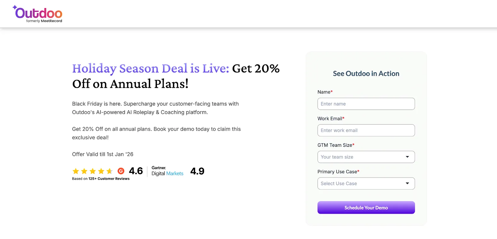 Outdoo is a leading AI Roleplay and Coaching Platform for customer-facing teams. It helps close the complete coaching loop from pre-call preparation to post-call reinforcement, empowering reps to prepare, perform, and improve continuously.