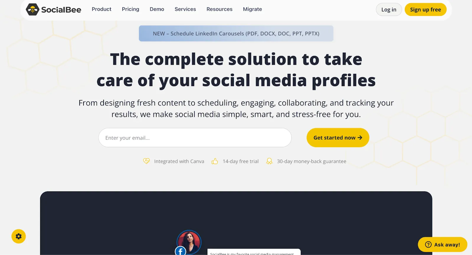 SocialBee is an AI-powered social media management platform that lets you plan, create, and publish content across major networks from one place. Its AI features quickly generate captions, visuals, and post ideas, while Copilot builds a personalized strategy based on your goals. You can easily schedule posts, collaborate with your team, track performance with detailed analytics, and manage messages and comments in real time from a unified inbox.