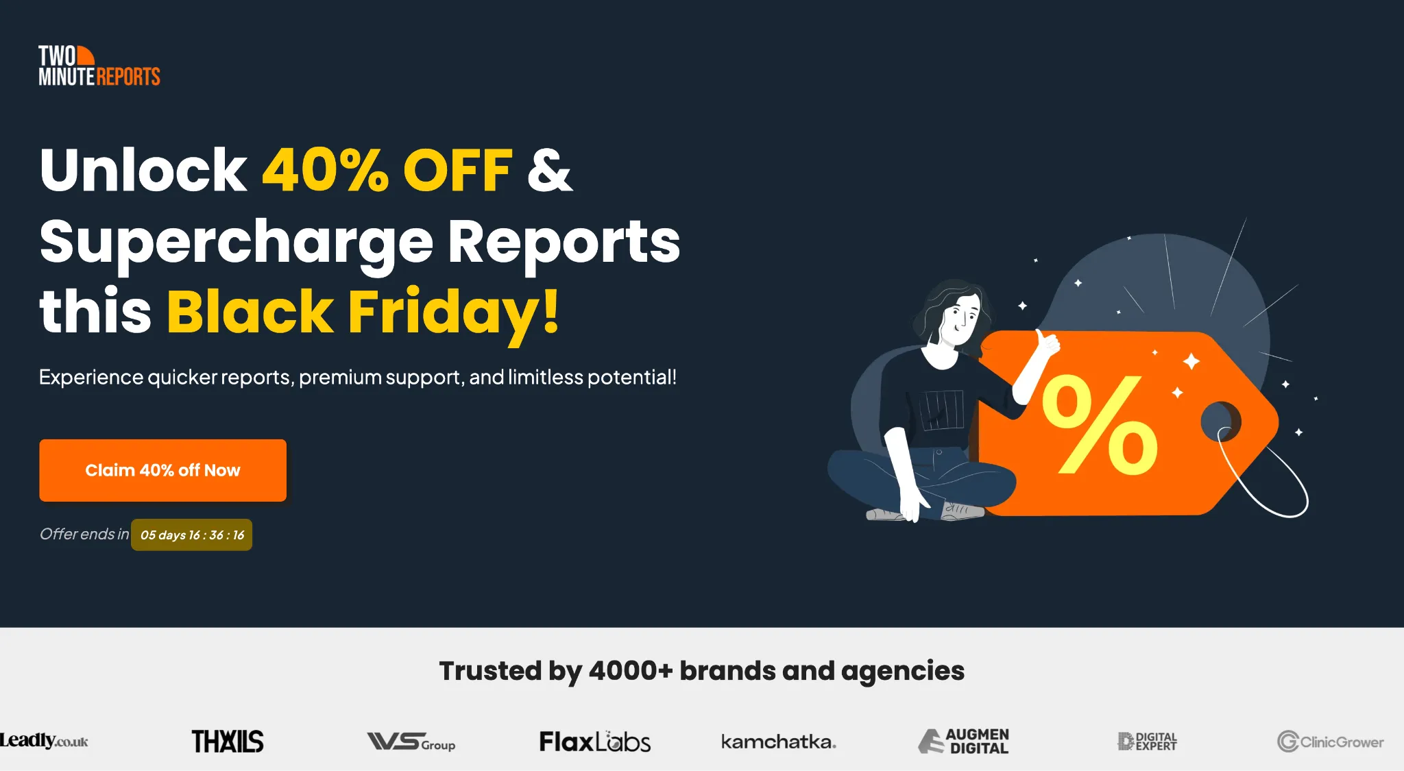 Two Minute Reports is a cross-platform agency reporting tool for marketers. Track paid and organic campaigns across 30+ platforms in one dashboard. Automate reports, schedule email updates, and analyze data in Google Sheets or Looker Studio. No manual work needed.