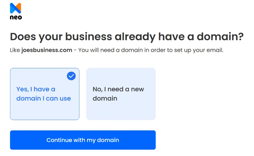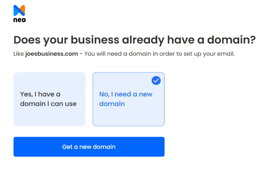 Use Neo to help you create a professional email address tailored to your business identity.
