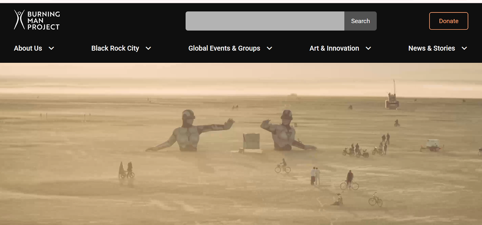 Burning Man is not an ordinary festival, but a complete community and cultural event. Their site is created to portray that distinctiveness.