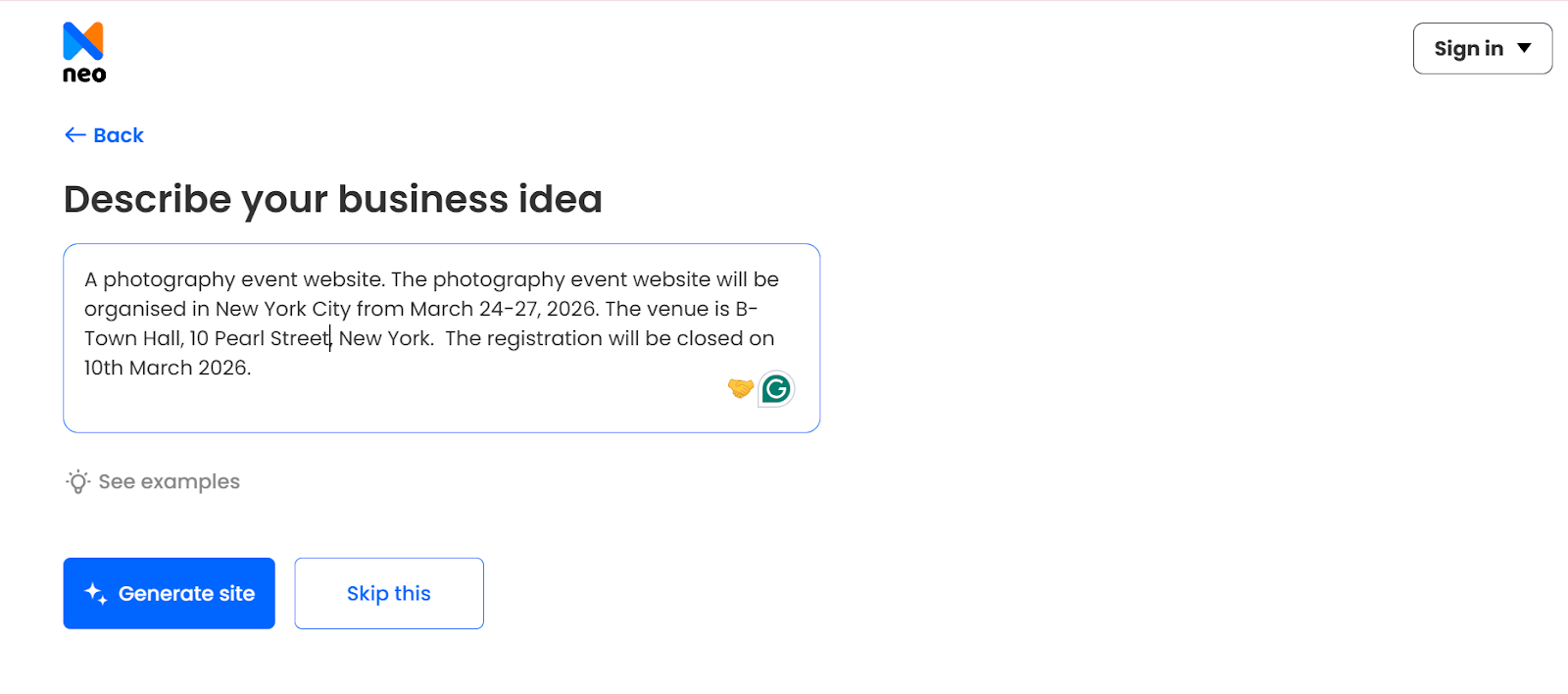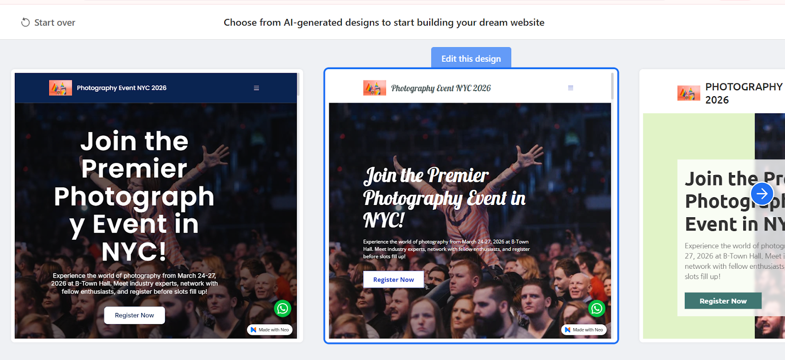For event organizers, creating an event website is a must if they want to attract an audience from all parts of the world. But creating it should not be a hassle. A modern, simple, and AI-powered website builder tool like Neo Sites can help you create a quick website or landing pages in no time.