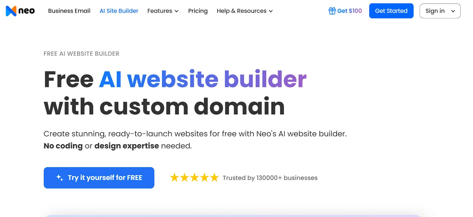 - Visit the Neo Sites, and then click ‘Try it yourself for free’.