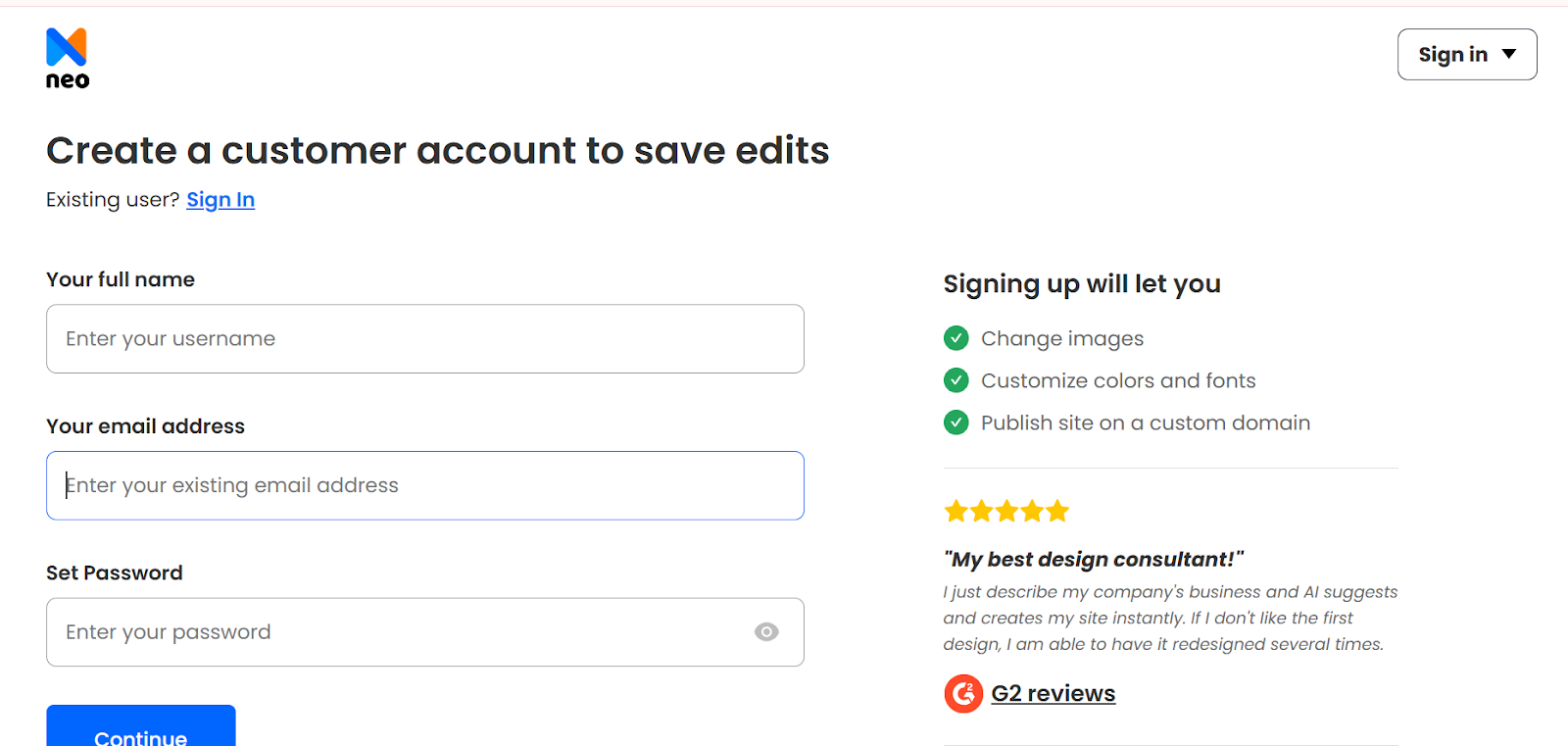 Step 1. Visit Neo Sites and click on Try it yourself for free.