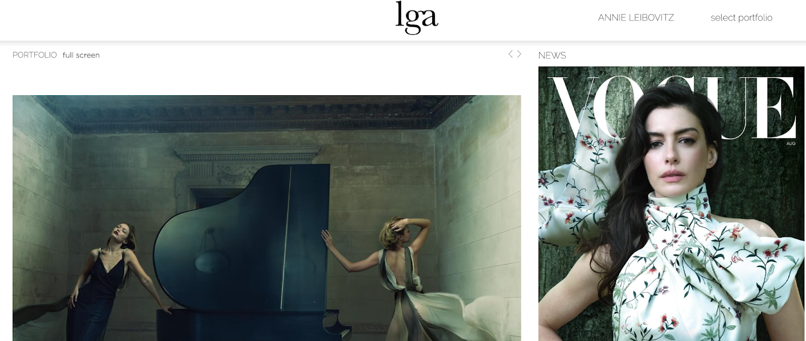 The Annie Leibovitz site has a sophisticated, editorial-based design that resembles the top-level print media.
