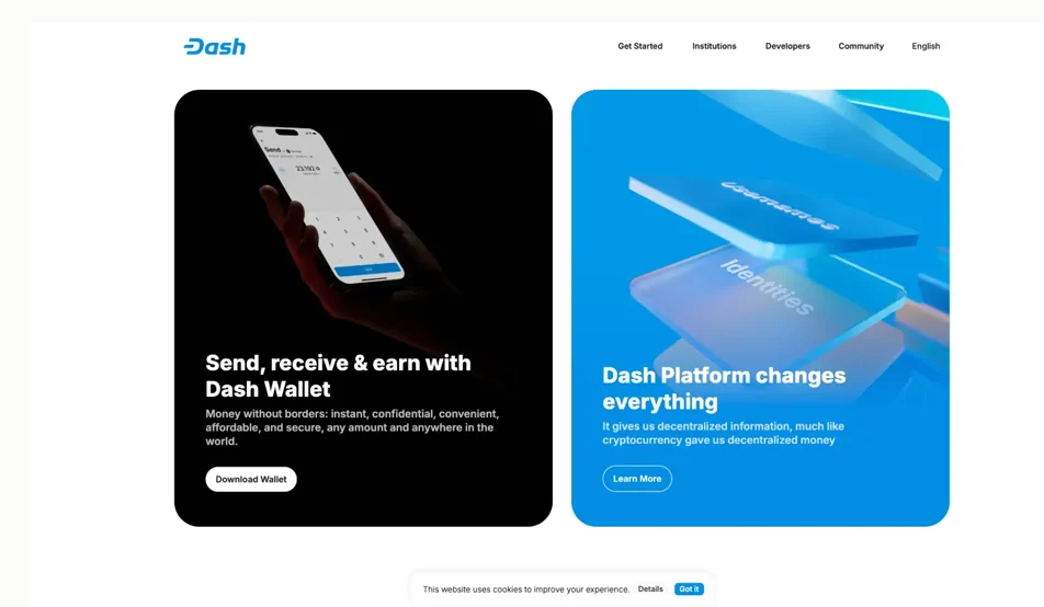 The Dash payments app website is a static website that looks simple but offers a dynamic experience.