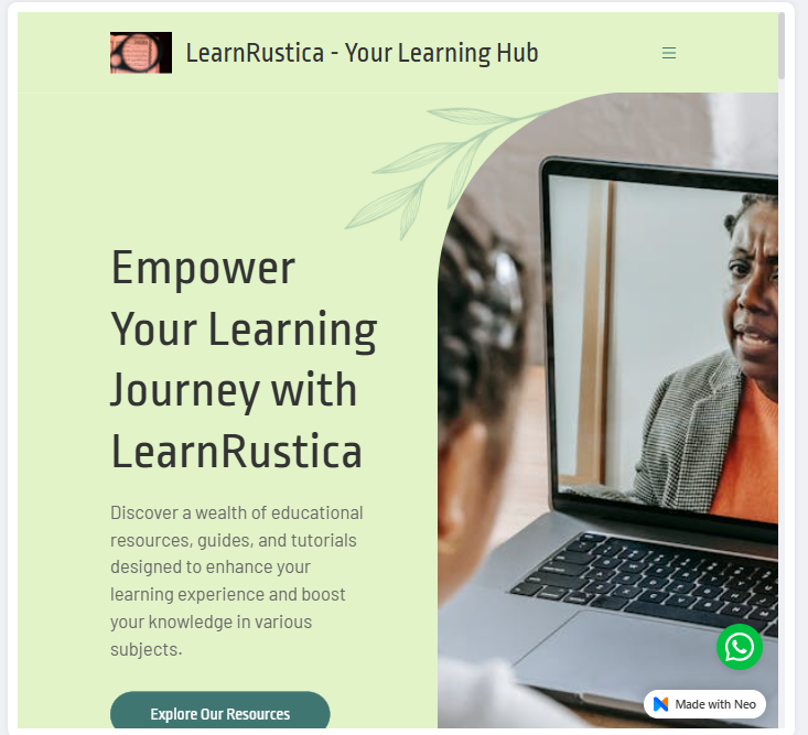 The sample template uses a warm color palette, a simple layout, with a modern learning style image. The headline clearly displays their aim, and the concise description provides an overview os what they offer with their educational and learning services.
