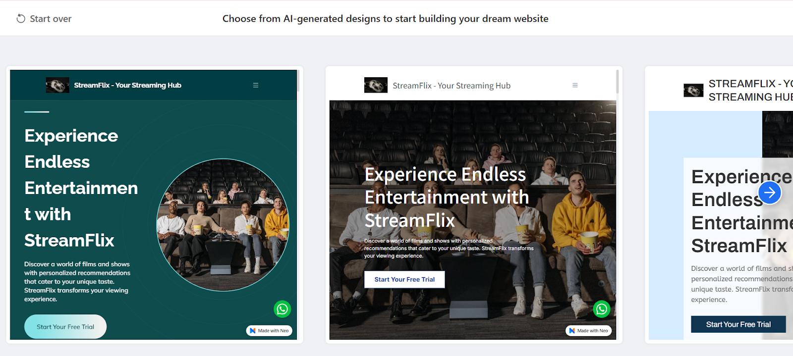 Step 4. Neo Sites will start building your static website in just a few minutes, with content, images, and layout already set up. Look through the designs and click “Edit this Design” on the one you like most.