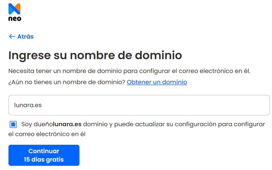 Si ya has registrado un nombre de dominio, puedes obtener fácilmente la dirección de correo electrónico de tu empresa. Así es como Neo facilita el registro de tu dirección de correo electrónico empresarial personalizada: