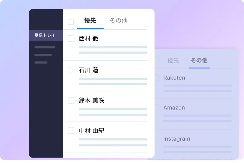 優先受信トレイは大切なメールだけを抽出して、重要な案件に先に集中できるようにし、生産性と時間管理を高めます。