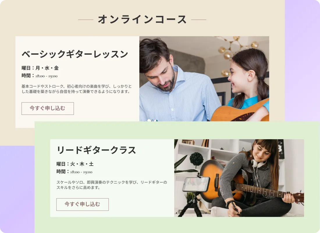シラバス、スケジュール、料金、推薦の声、FAQ、講師プロフィールをひとつのサイトにまとめましょう。