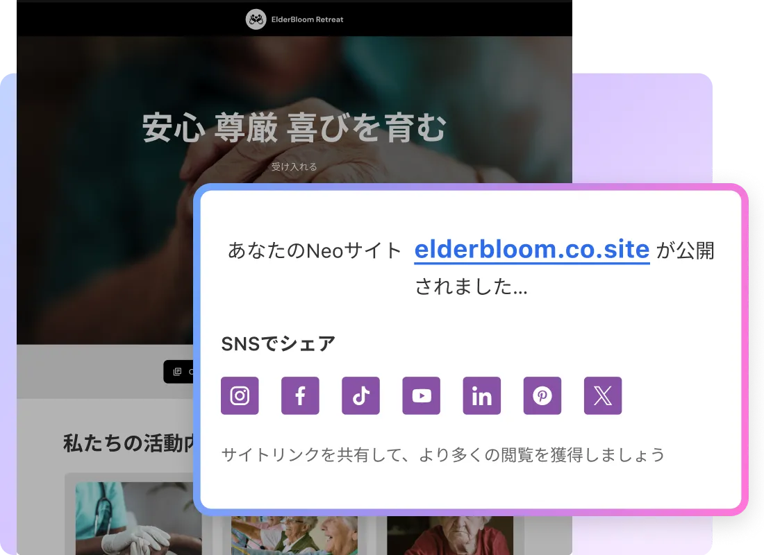 NeoのAIウェブサイトビルダーなら、難しい技術なしでより多くの人々に届け、本当の変化をもたらすためのすべてが手に入ります。ウェブサイトに任せて、人生を変えるという本当に大切なことに集中しましょう。