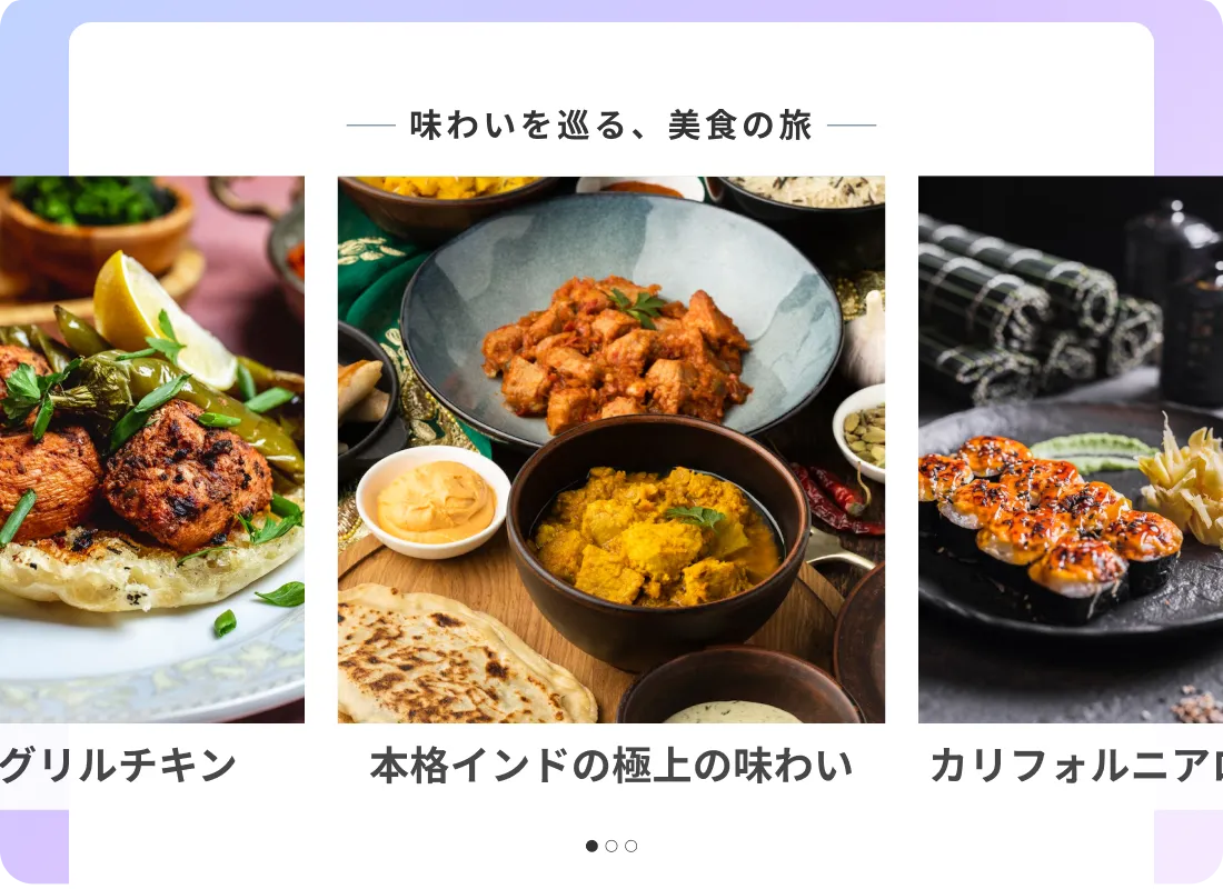 メニューを紹介し、人気料理を目立たせ、顧客がオンラインで簡単に予約や注文ができるように、一つの場所にまとめましょう。