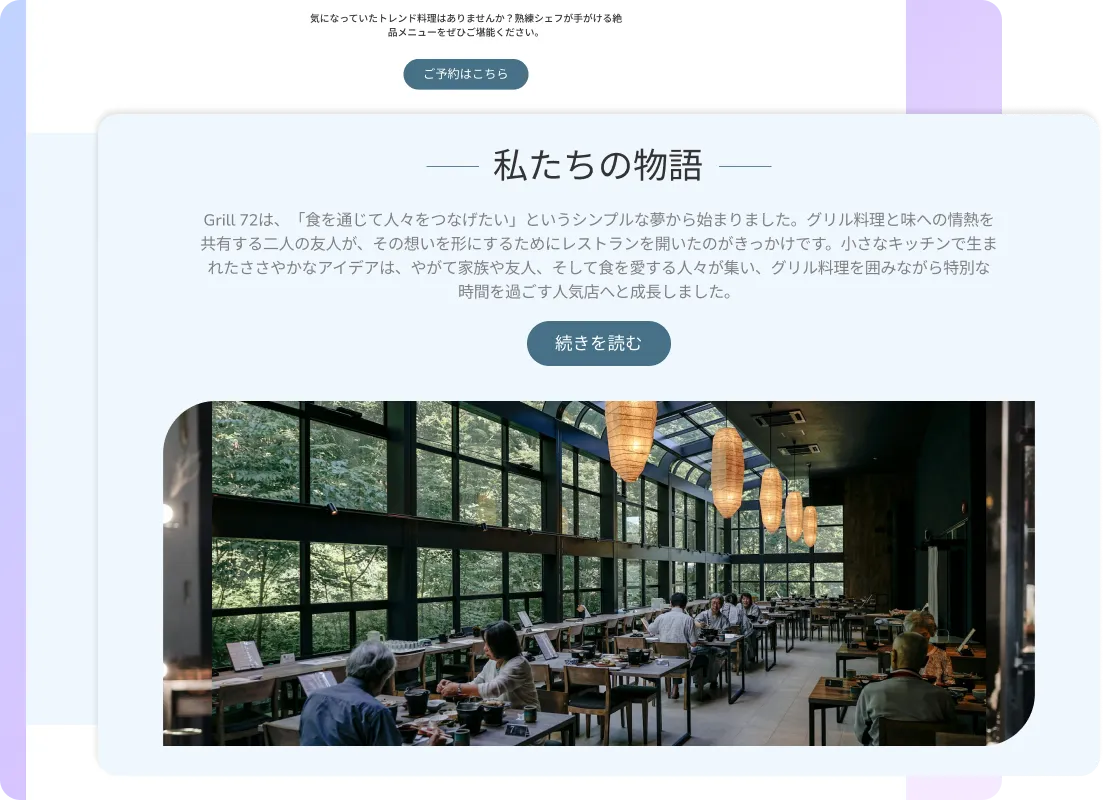 顧客はストーリーを愛します。レストラン開店の経緯や料理に込めた情熱、特別な魅力を語りましょう。この個人的な要素が訪問者を引き込み、関係を築きます。