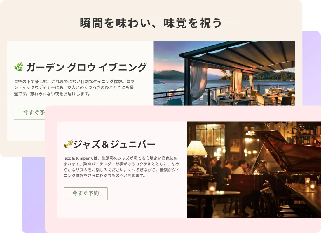 あなたのレストランの独特な雰囲気をオンラインで表現しましょう。