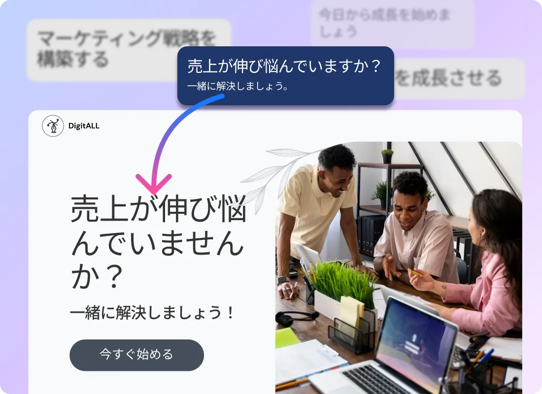 単に何をしているかを説明するのではなく、顧客が抱える問題に対する解決策としてビジネスを位置づけましょう。例えば「[問題]でお困りですか?私たちの[商品/サービス]が解決します」。