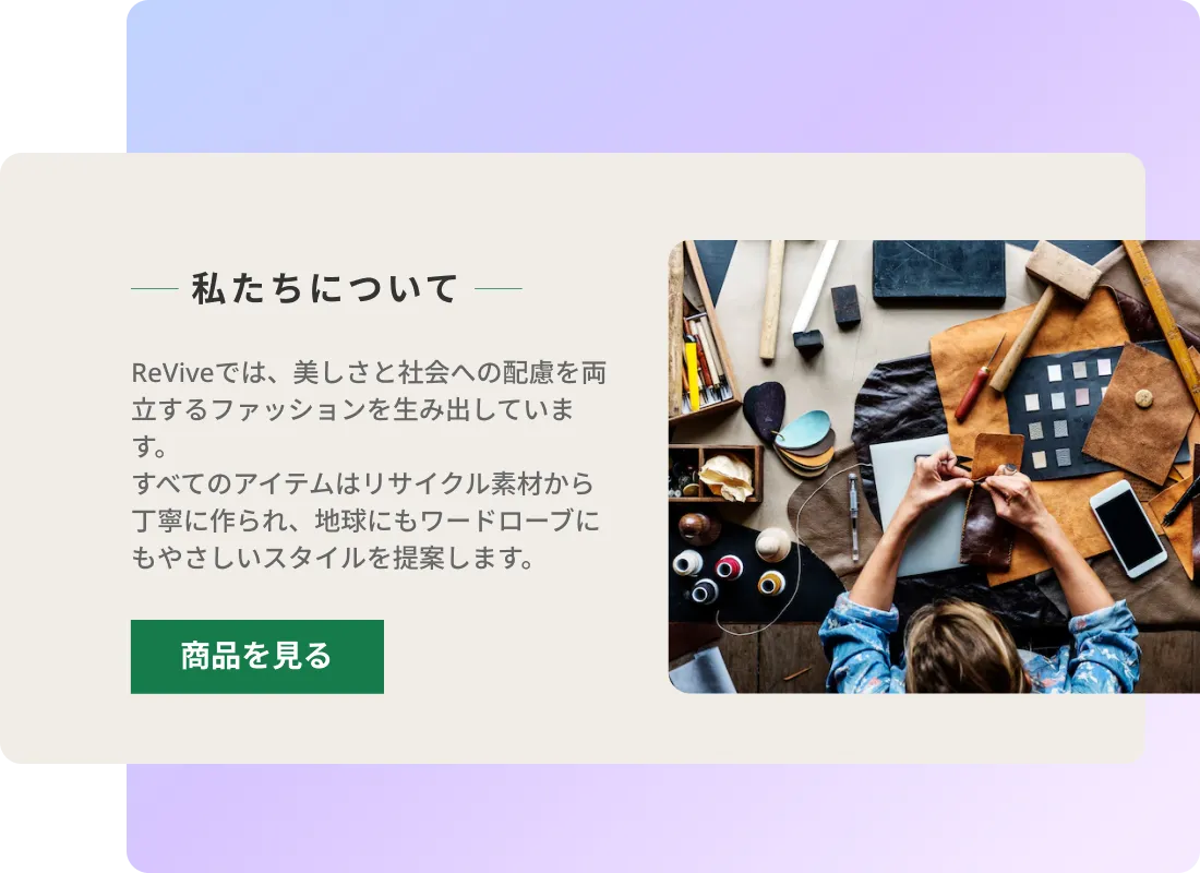 提供するものが特定の考えや思いを表しているなら、「私たちについて」のセクションでそれを強調し、ページ全体で繰り返しましょう。背景や視点を共有することは、読者とのつながりや信頼を築く助けになります。