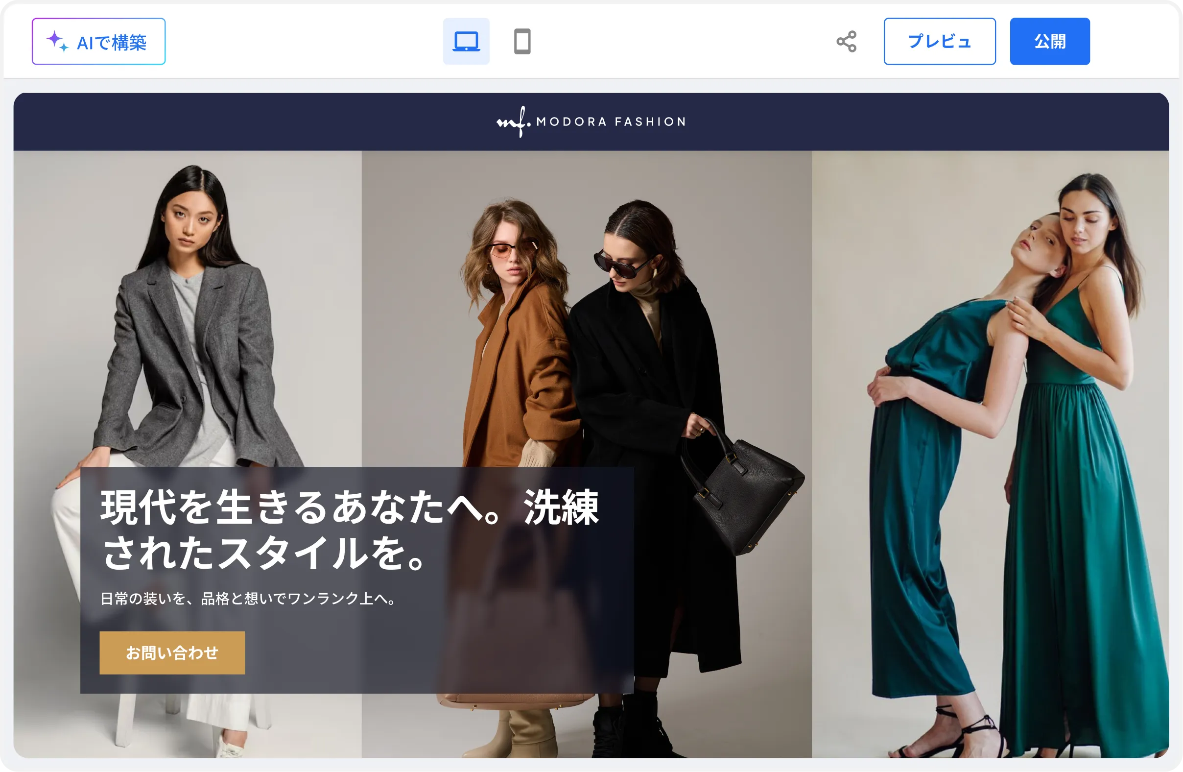 AIウェブサイトビルダーで公開準備が整ったサイトを生成します。