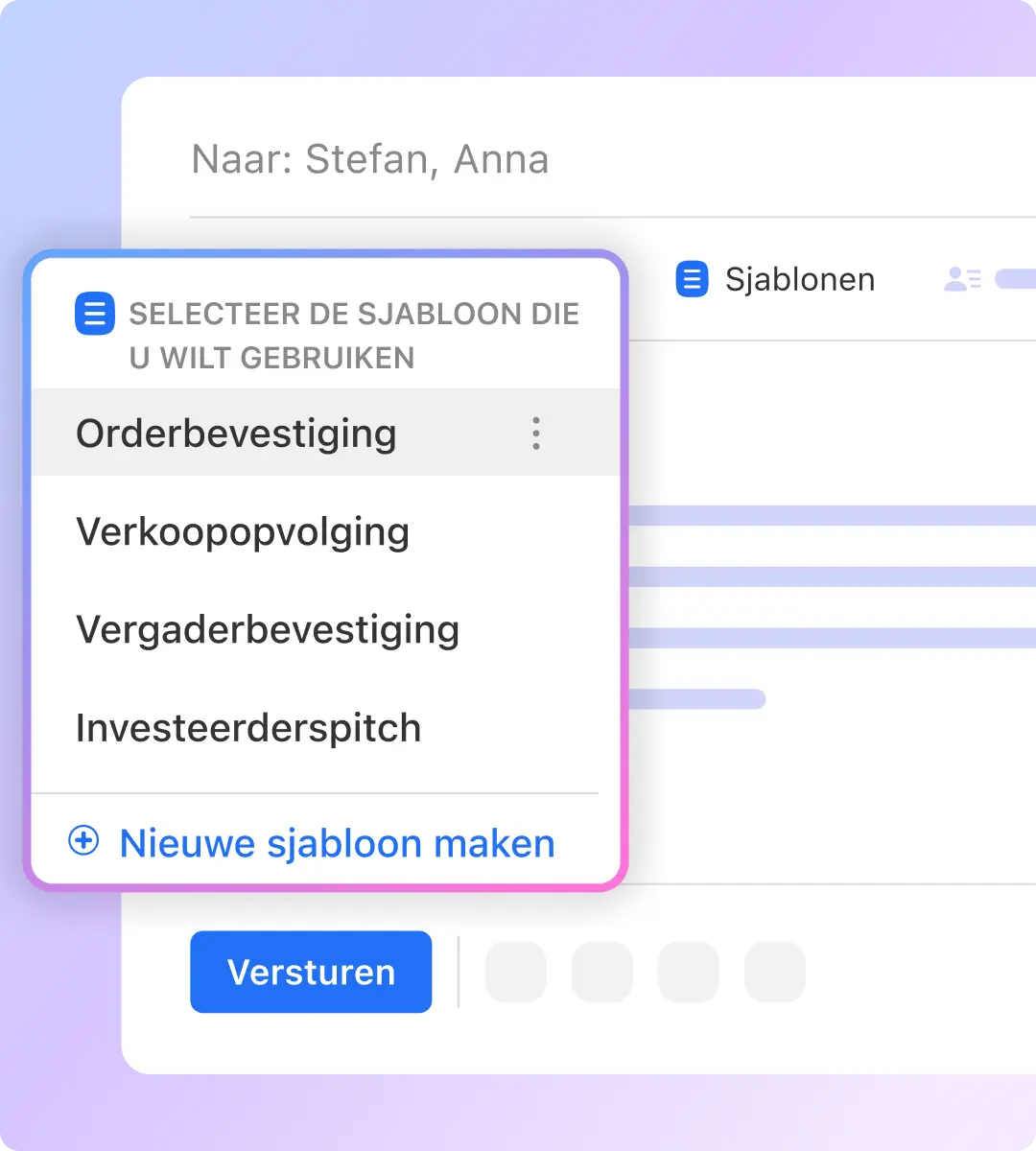 Sla e-mails op om ze herhaaldelijk opnieuw te gebruiken. Sjabloonbibliotheek met vooraf geschreven e-mails inbegrepen.