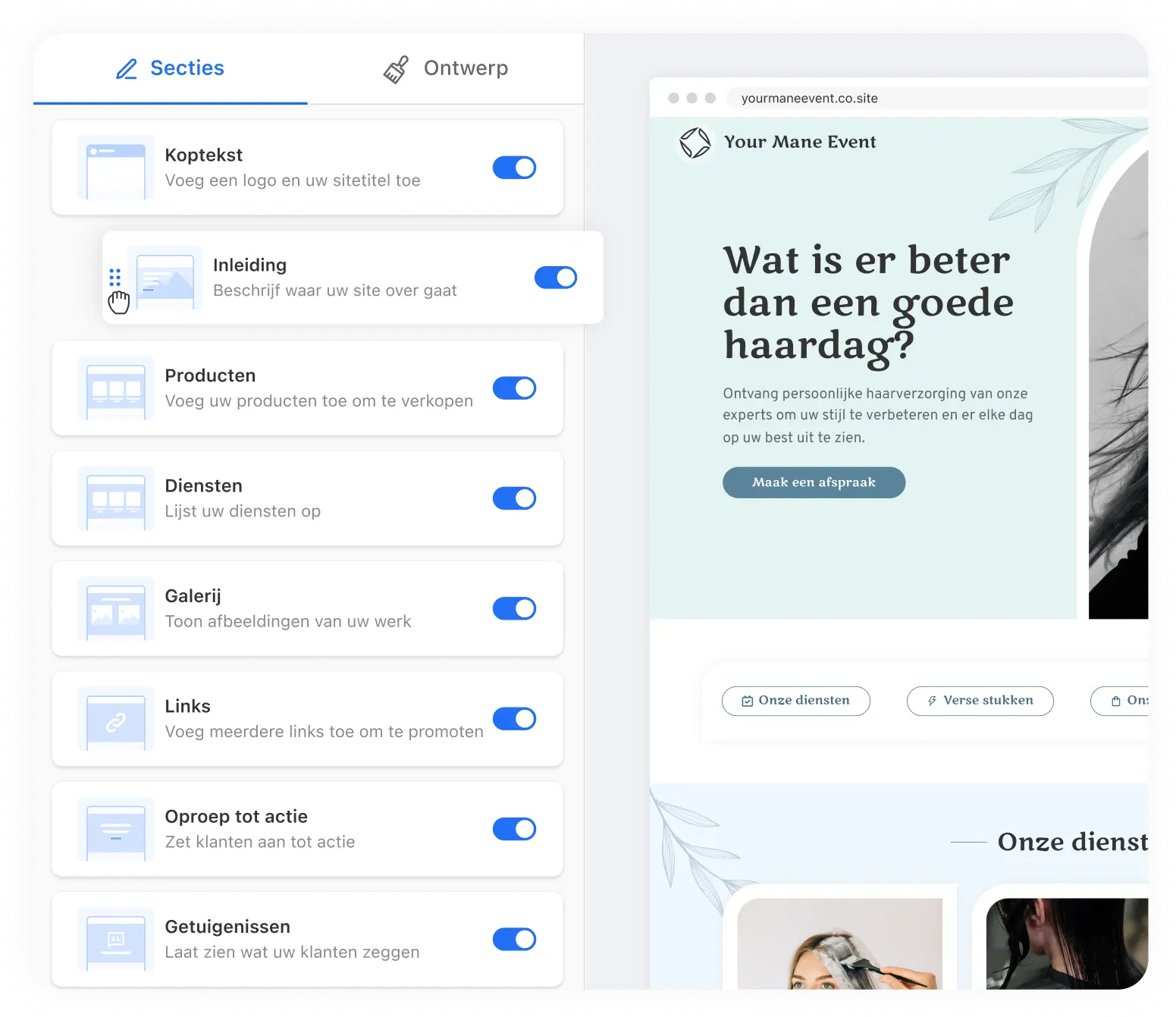 Kant-en-klare secties voor uw diensten, producten en meer...